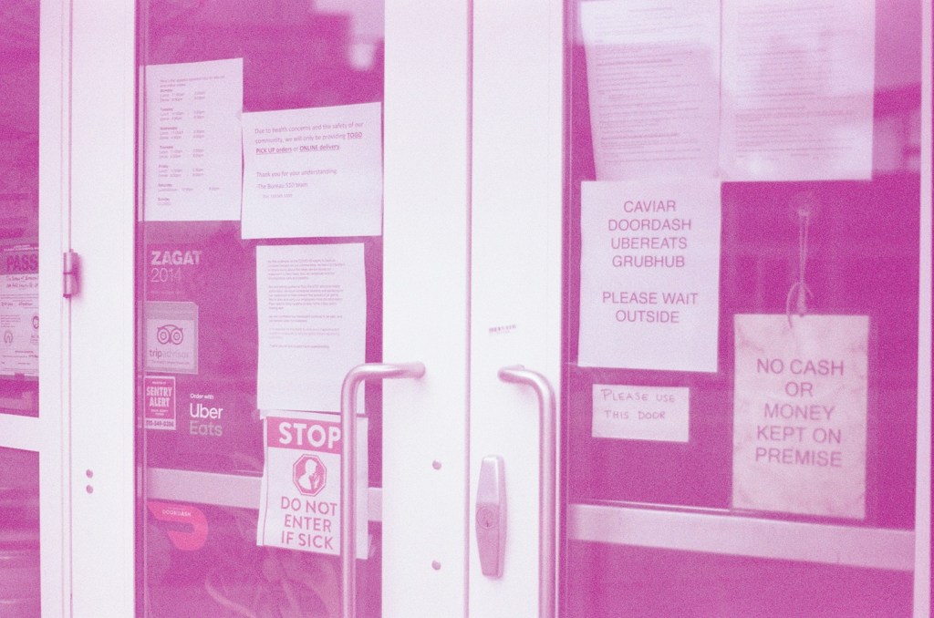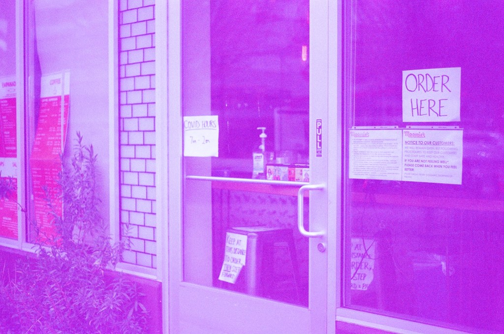 I also wanted to capture the forbidding signage in local business windows and the eeriness of empty streets, both of which served as gentle reminders that there really is no escape “back to normal.”