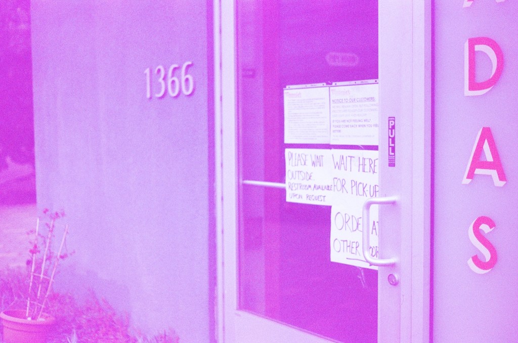 Most of the photos are either from inside my Oakland apartment, or around the neighborhood. I wanted part of teaching myself to shoot film to also be documenting COVID-19 and my experience of sheltering-in-place. I’m thankful the photos turned out at all, but especially happy because the images managed to capture my feeling of quarantine pretty well: still, quiet, almost dull, but at the same time dreamlike – similar to the recurring feeling of I can’t believe this is happening that has become all too commonplace for folks.