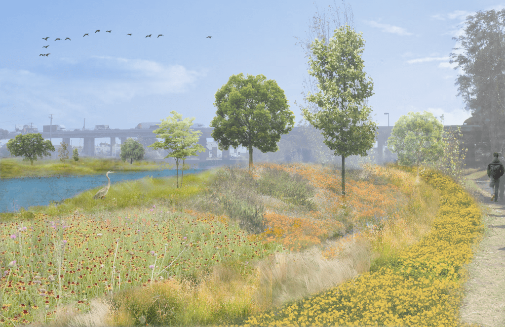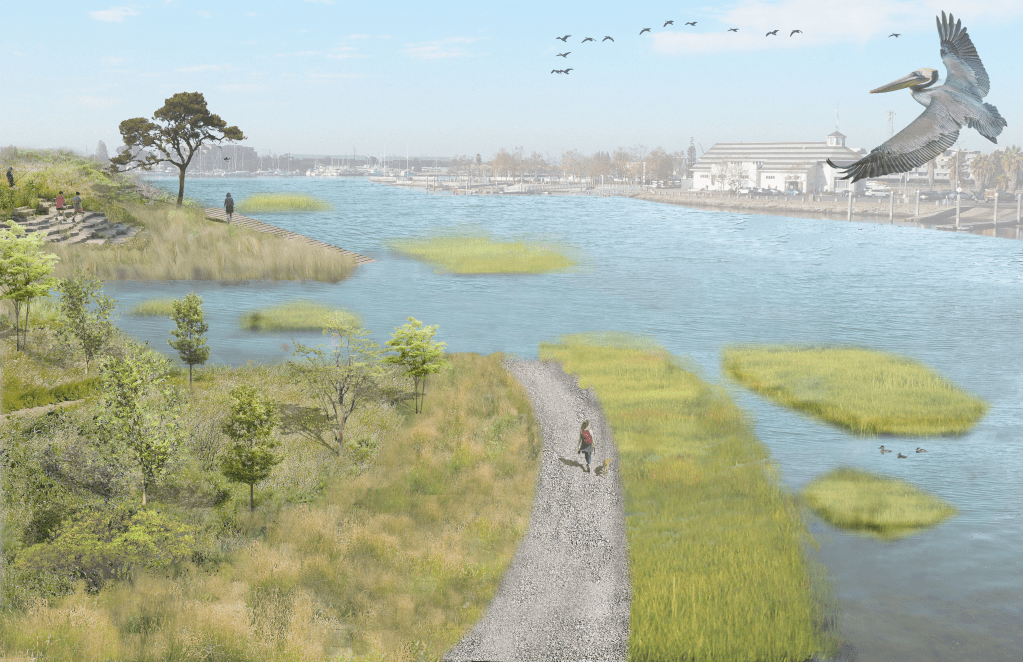 This is a flexible landscape that allows for up to 36” of further inundation with consideration to the 10-year sea level rise and storm surge projections for this area courtesy the San Francisco Estuary Institute.